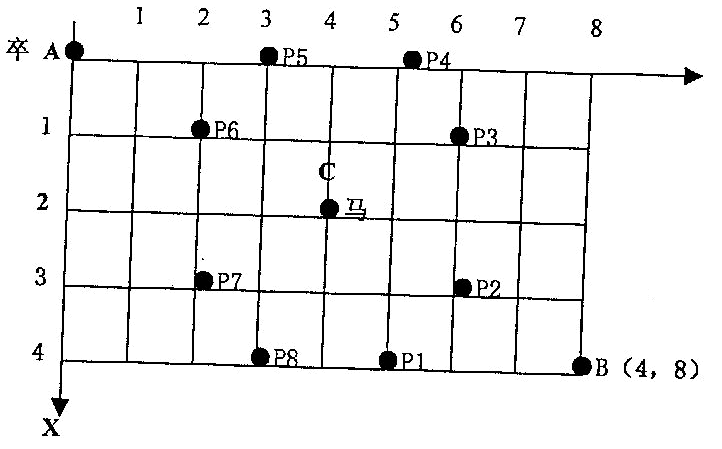 棋盘用坐标表示,A 点(0,0)、B 点(n,m)(n,m 为不超过 20 的整数,并由键盘输入),同样马的位置坐标是需要给出的(约定: C<>A,同时C<>B)。现在要求你计算出卒从 A 点能够到达 B 点的路径的条数。